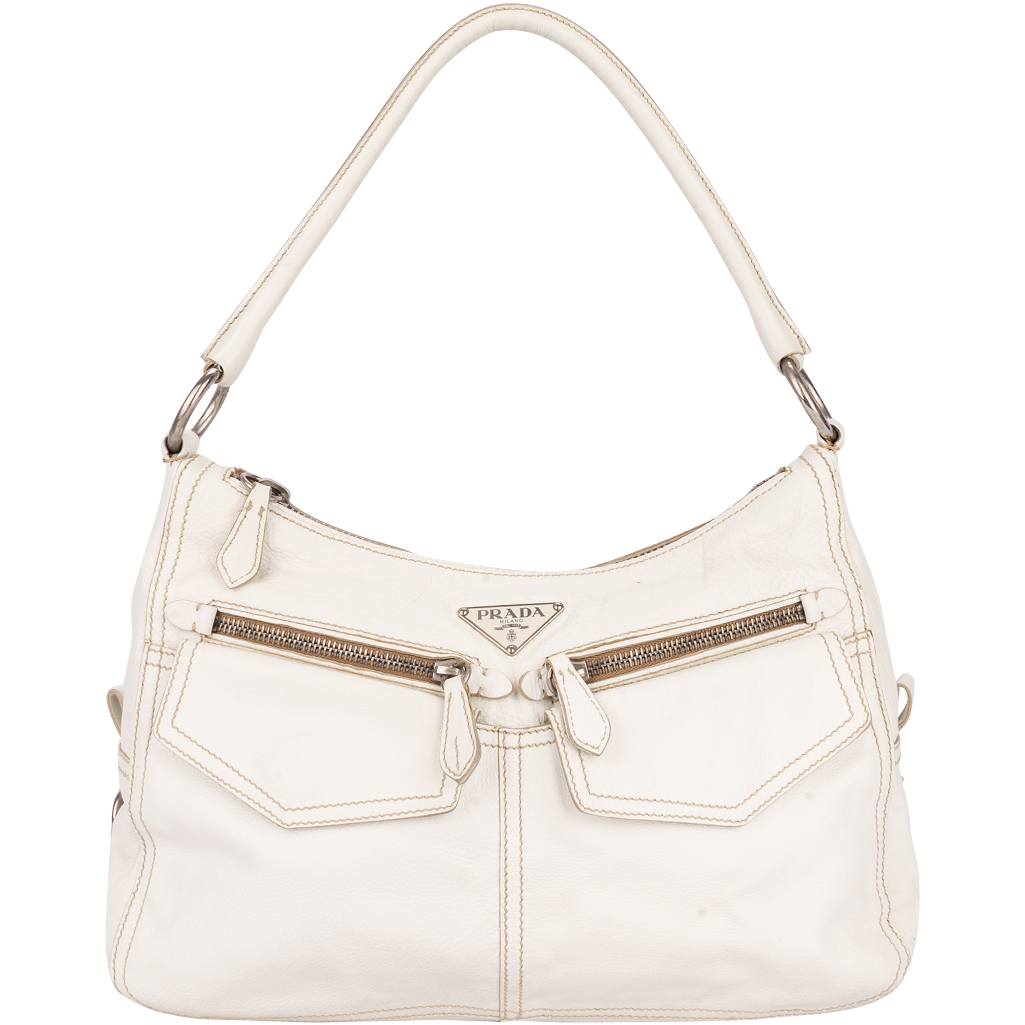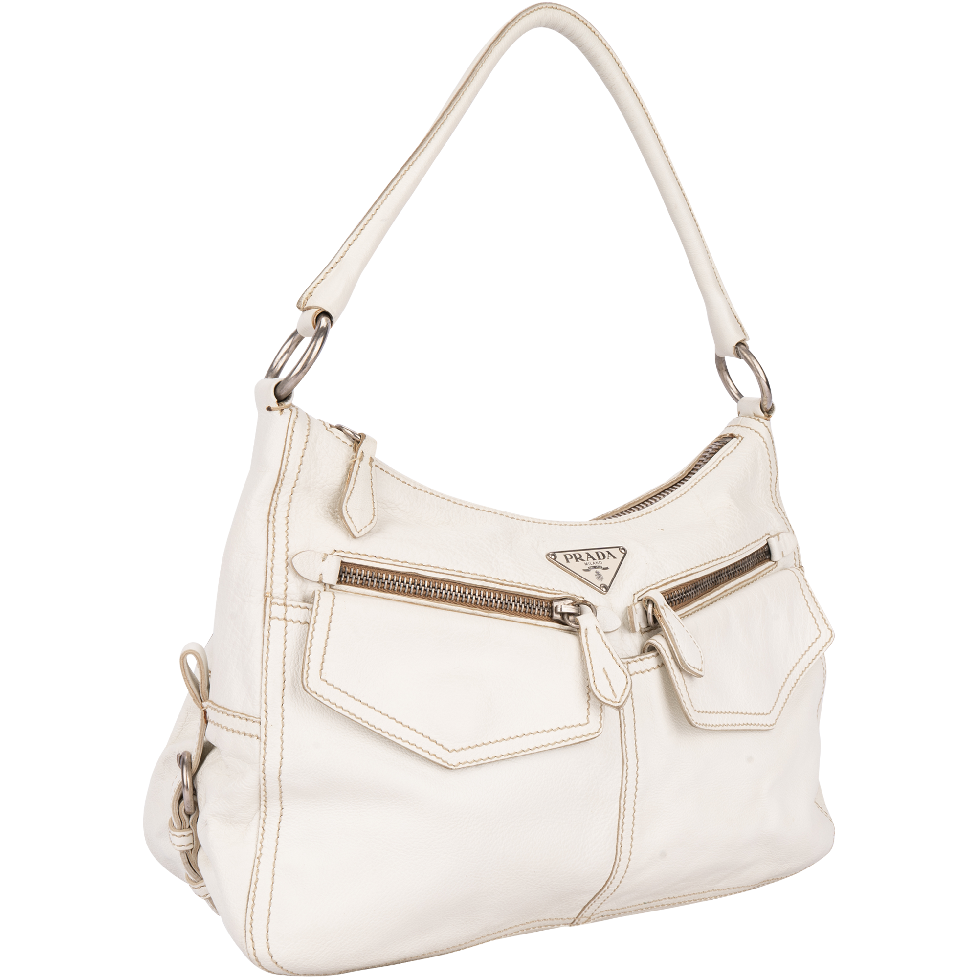 Prada White Triangle Shoulder Bag
